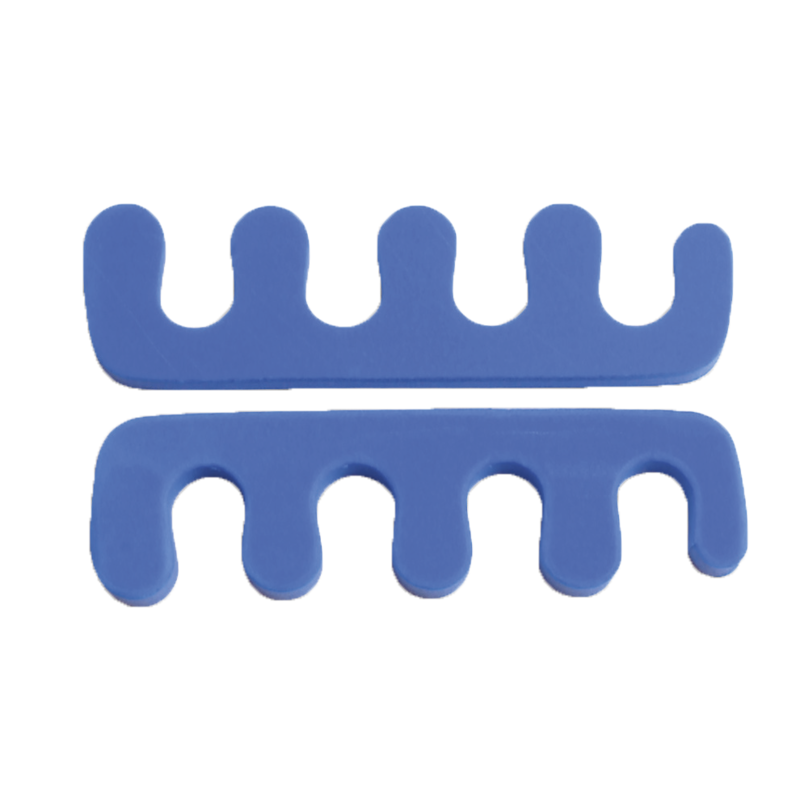 Separadita in materiale schiumoso morbido adatto sia per le dita delle mani che dei piedi. Forma a cuore. Colore azzurro.