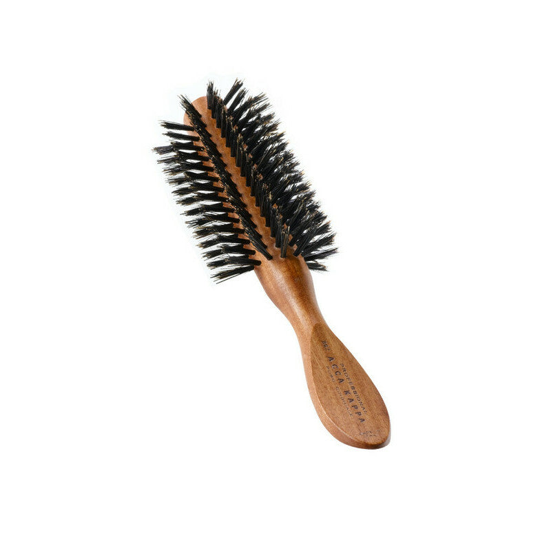 Spazzola legno mezzo rullo adatta per acconciature. Manico ergonomico in legno, setole di cinghiale. Ideale per tutti i tipi di capelli.