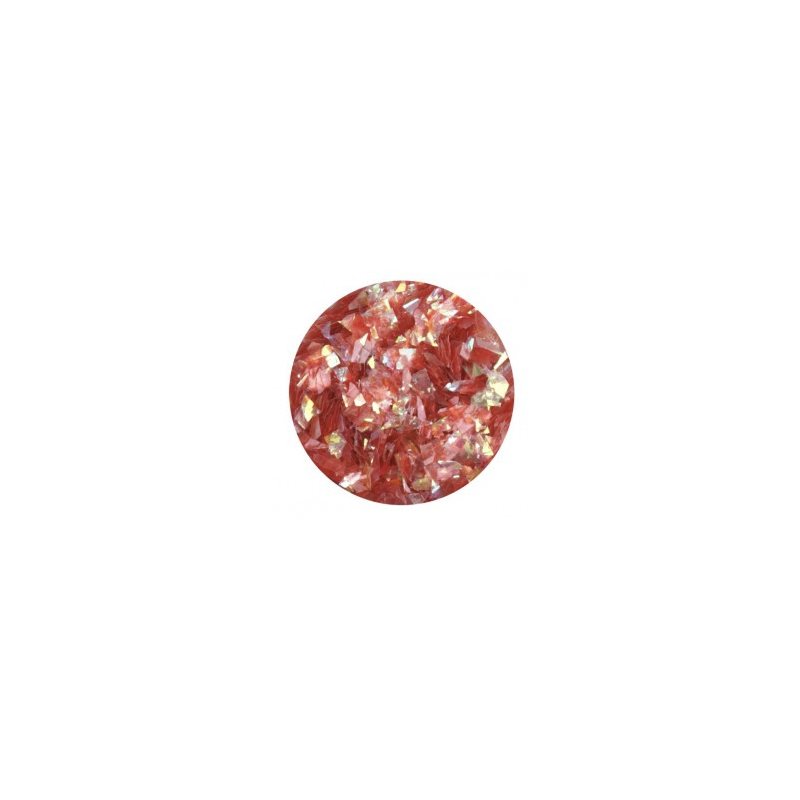 Sottili scaglie disponibile in vari colori moda, che inserite nel gel, danno un particolare effetto luminescente e cangiante. Colore rosso.