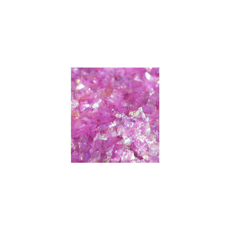 Sottili scaglie disponibile in vari colori moda, che inserite nel gel, danno un particolare effetto luminescente e cangiante. Colore rosa.