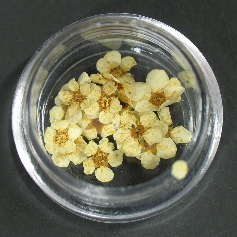 Fiorellini secchi pressati per il decoro delle unghie. Prelevare il fiore utilizzando la punta del pennello imbevuta di Top Coat, quindi poggiarlo sull'unghia e stendere delicatamente. Coprire con Top Coat. Colore avorio.