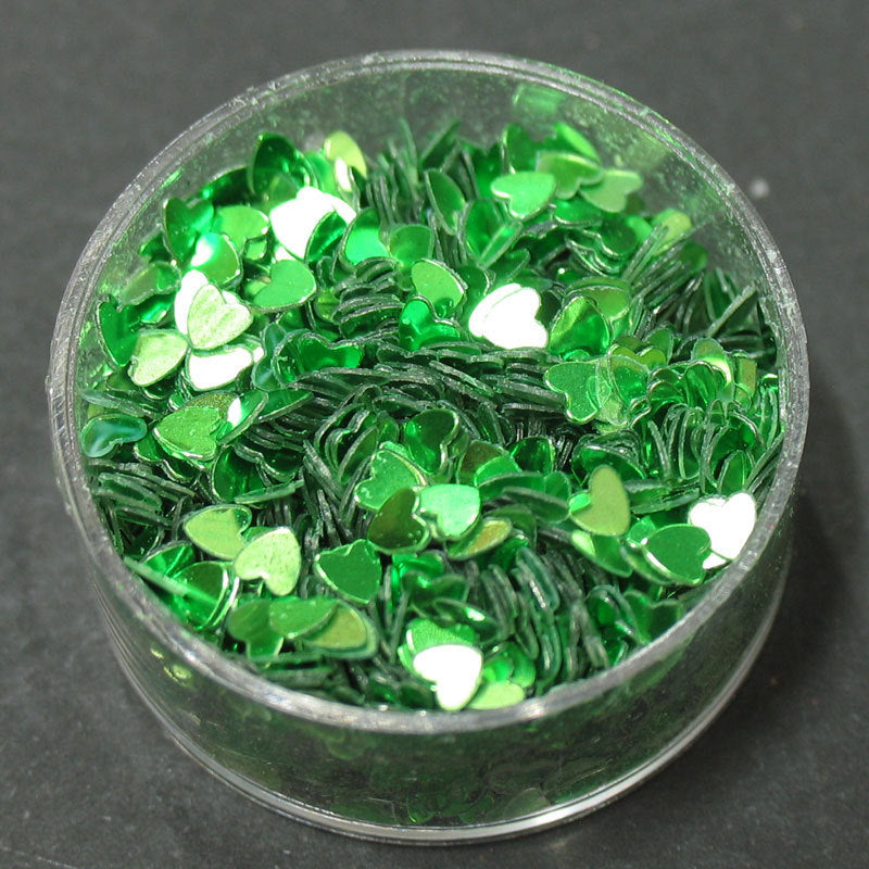Decoro ultrasottili per unghie a forma di cuoricini verde.