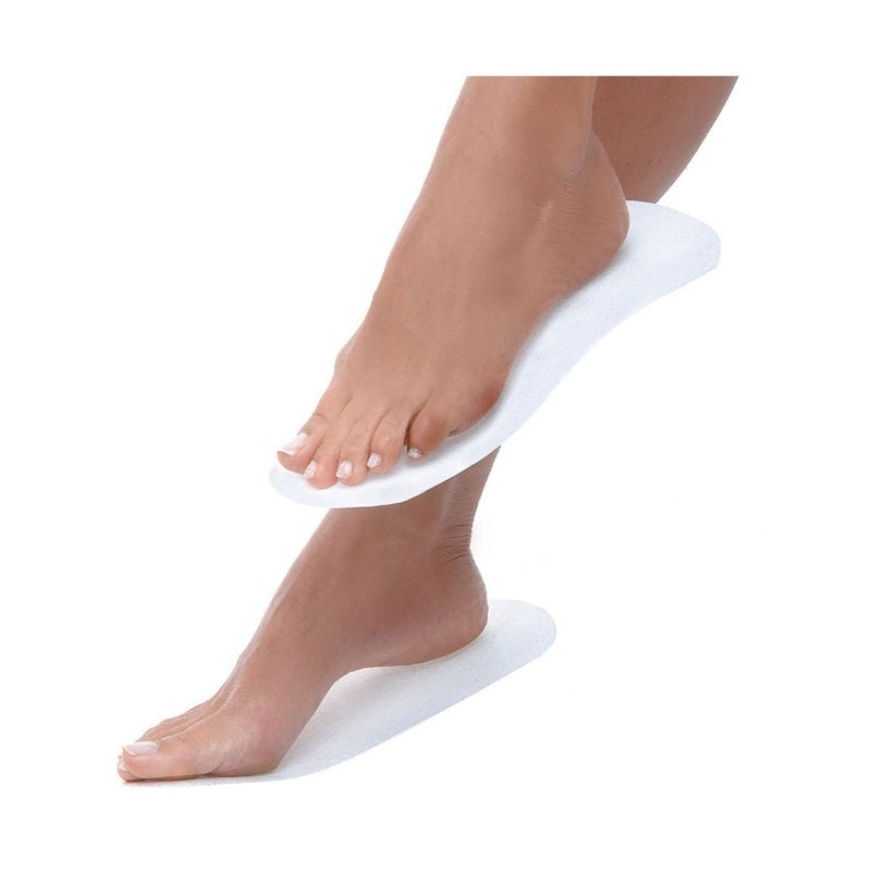 Novità. La soletta adesiva è un pratico sostituto delle ciabattine monouso. Si applica semplicemente appiccicandola sotto la pianta del piede.