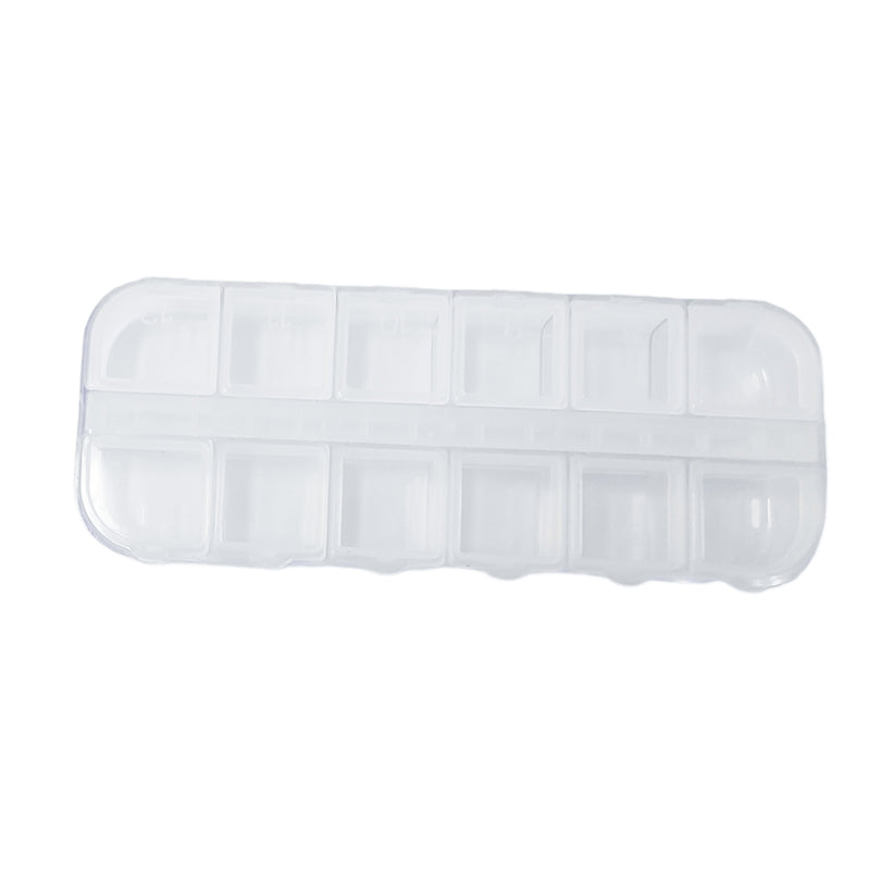 Pratica scatola porta decori suddivisa in 12 scomparti. Angoli arrotondati.
