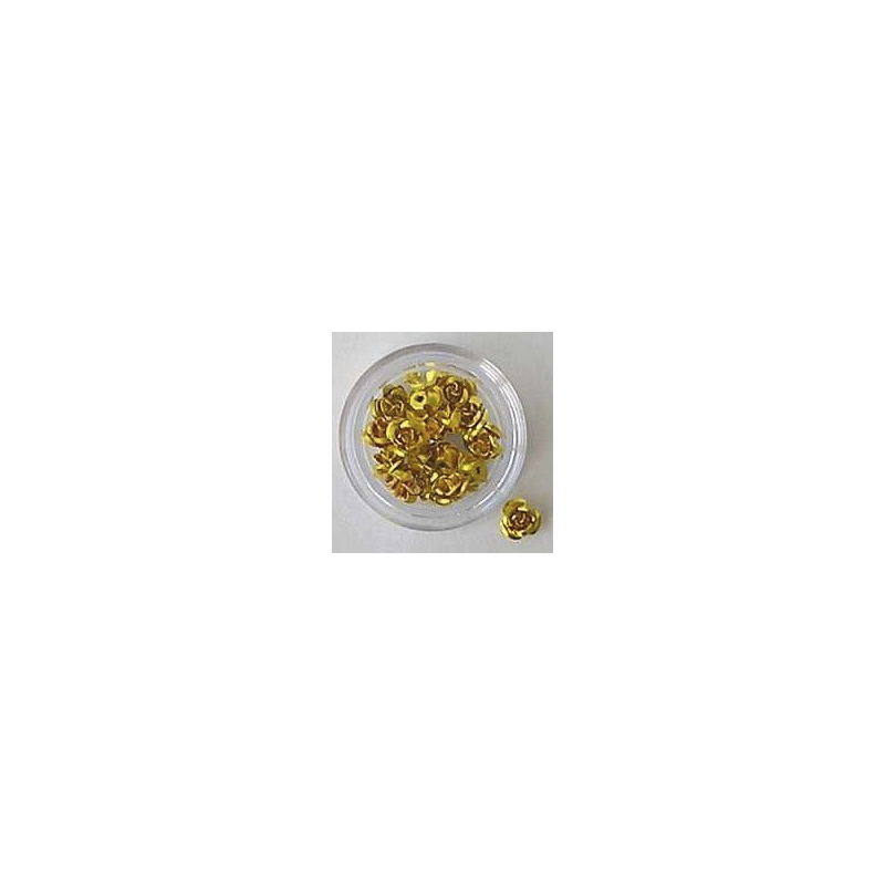 Decori per unghie in metallo a forma di rosellina. Colore oro.