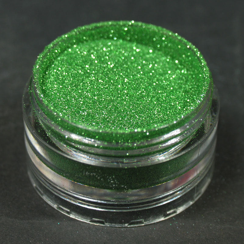 Polvere di glitter per unghie da applicare con colla o smalto trasparente. Si può utilizzare anche come nail-art in fase di ricostruzione unghia con gel. Colore verde.