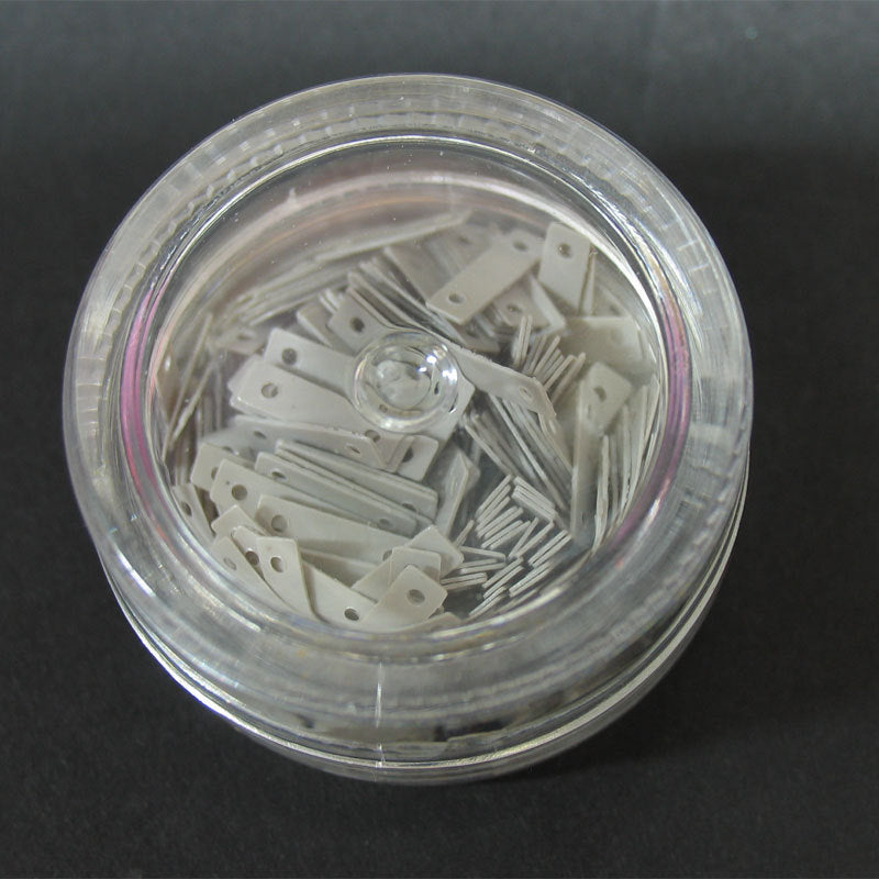 Decori per unghie a forma di piccoli rettangoli con due fori alle estremità. Colore grigio.