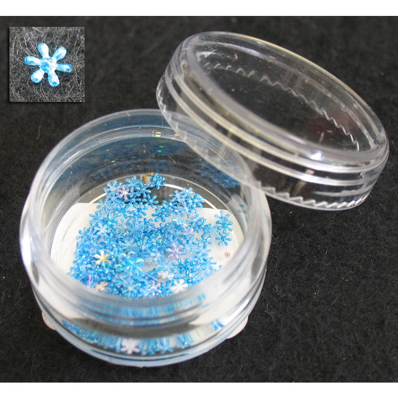 Novità. Decori per unghie a rilievo bombati colore azzurro scuro a forma di fiori.