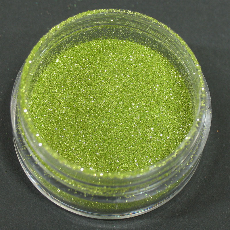 Polvere di glitter per unghie da applicare con colla o smalto trasparente. Si può utilizzare anche come nail-art in fase di ricostruzione unghia con gel. Colore verde lime.