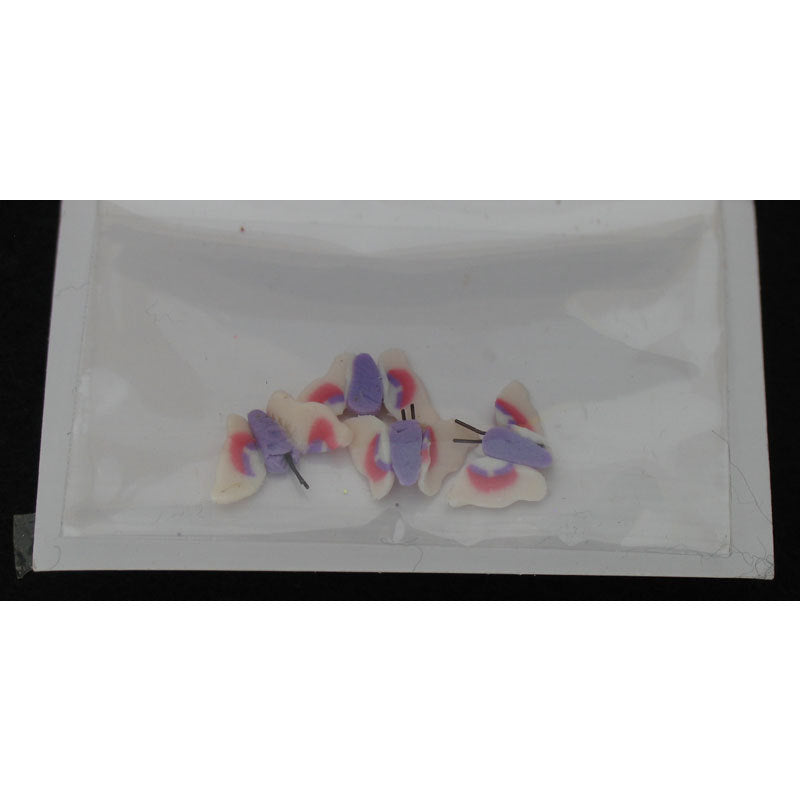 Decoro per unghie a forma di farfalle tridimensionali in plastica. Colore: lilla e bianco.