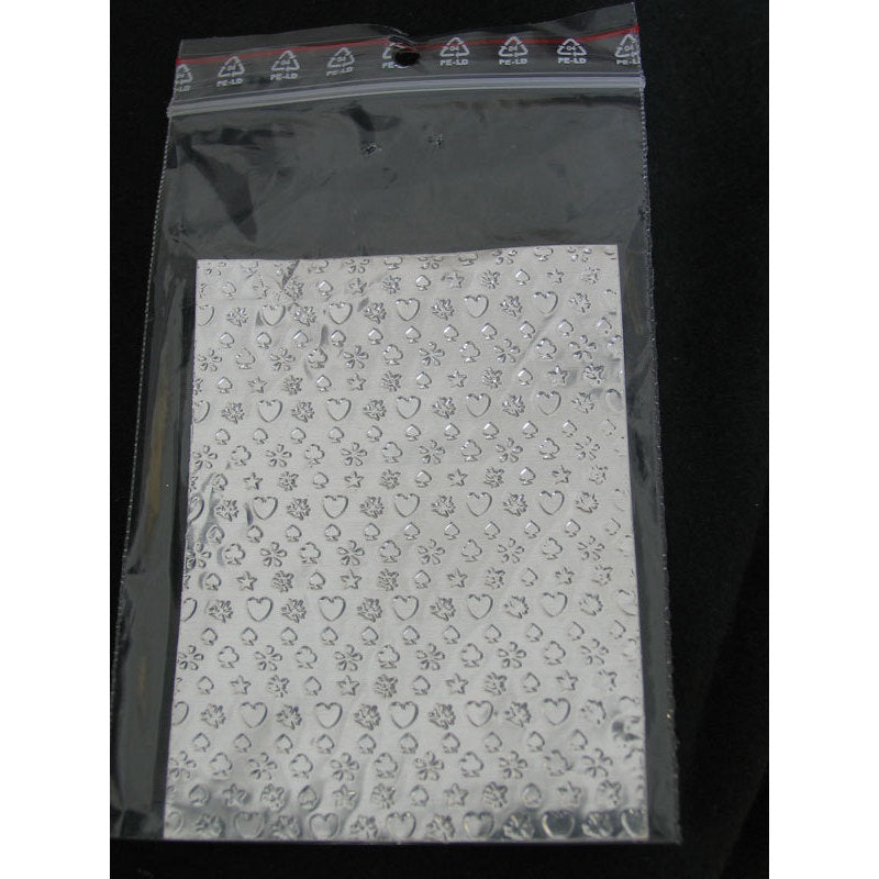 Sfoglia adesiva argentata con fantastici decori per realizzare opere di nail art.