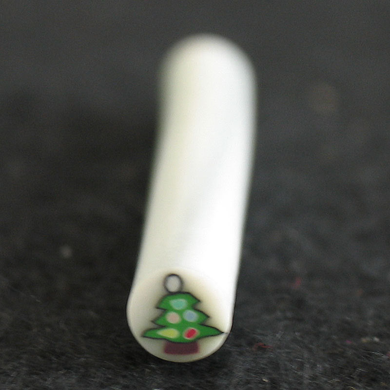 Il bastoncino Gimo è un decoro per unghie pronto per essere tagliato nello spessore desiderato per decorare le vostre unghie. Lunghezza: 5 cm circa. Motivo: albero di Natale.
