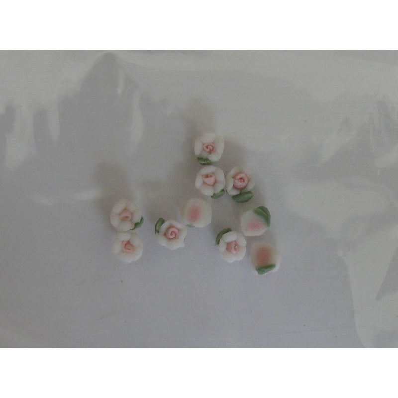 Decoro per unghie a forma di piccole roselline di materiale plastico. Colore bianco.