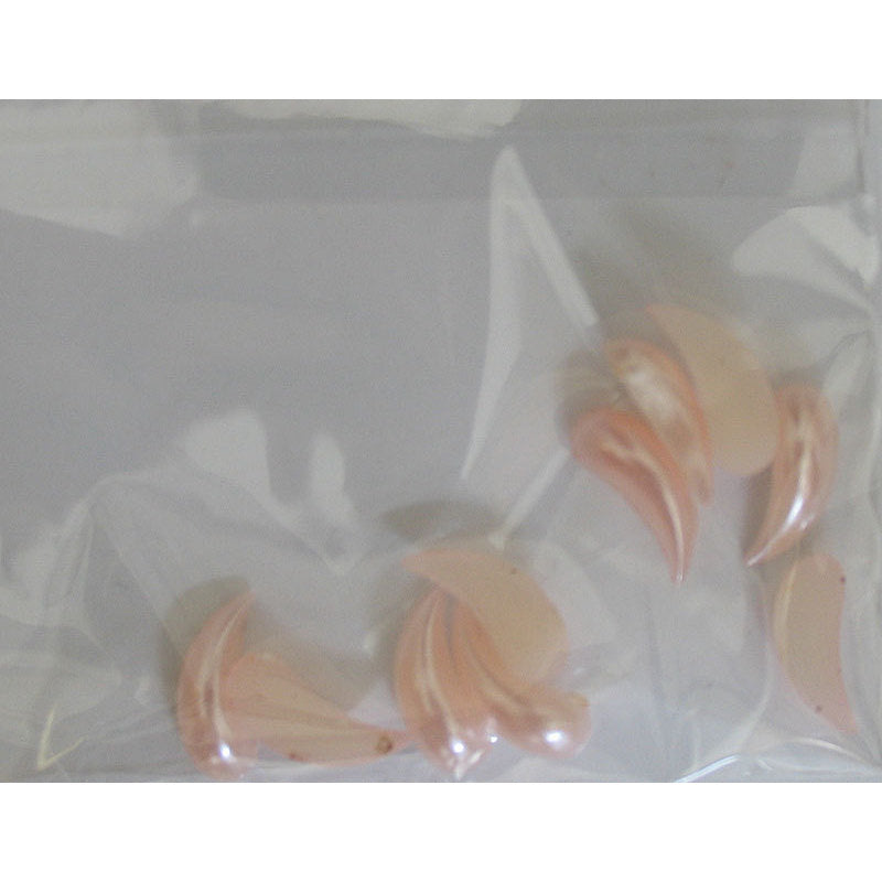 Decoro per unghie a forma di piccole virgole bombate di materiale plastico. Colore rosa chiaro.