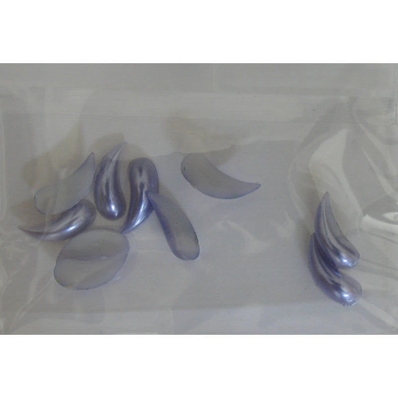 Decoro per unghie a forma di piccole virgole bombate di materiale plastico. Colore lilla.