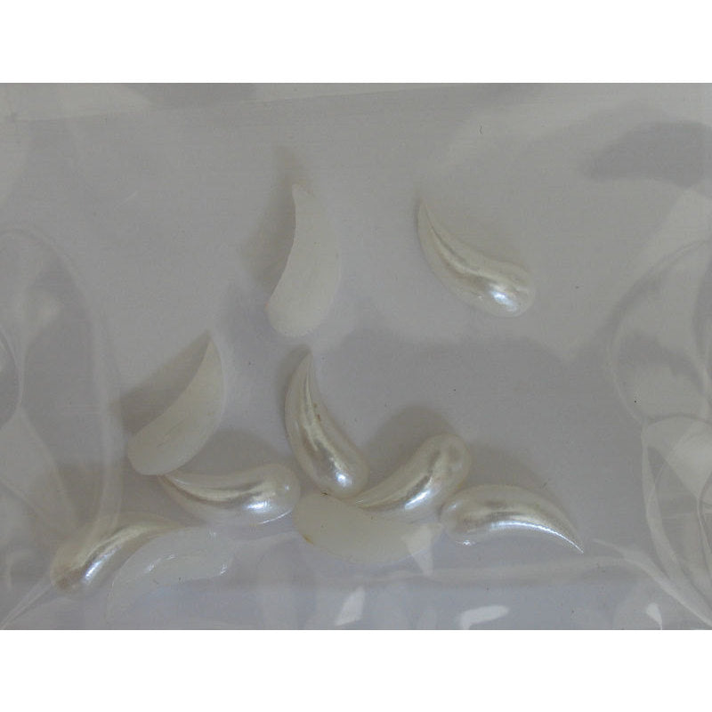 Decoro per unghie a forma di piccole virgole bombate di materiale plastico. Colore bianco.