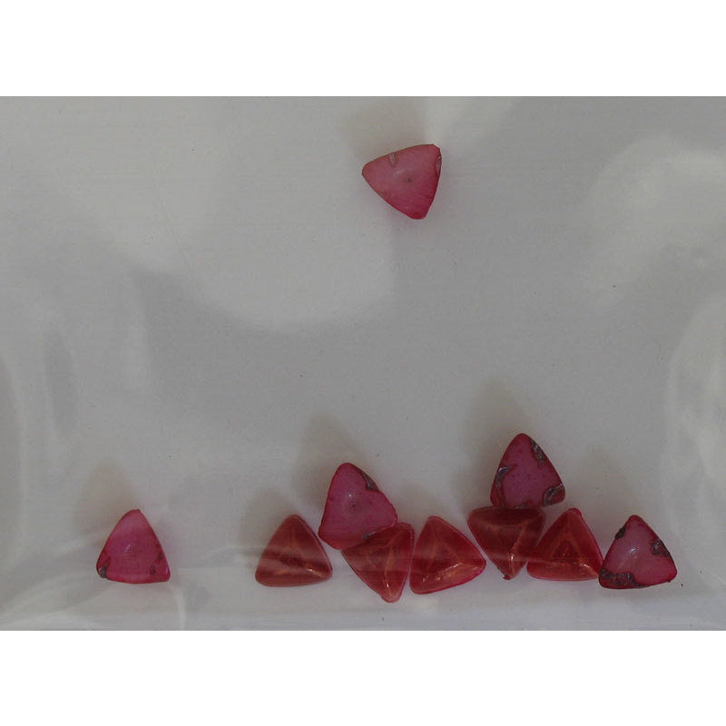 Decoro per unghie a forma di piccoli triangoli bombati di materiale plastico. Colore rosso scuro.