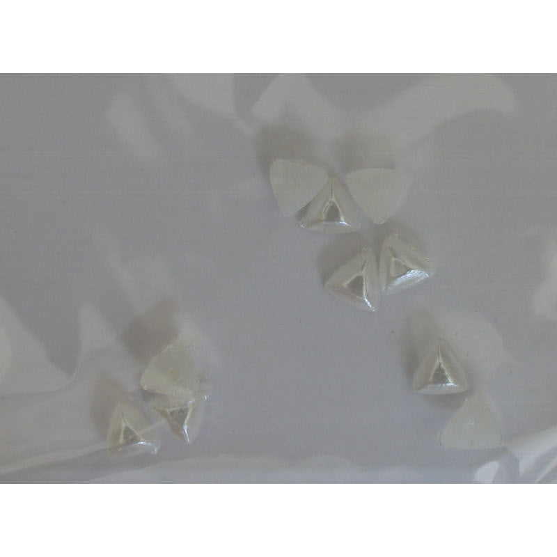 Decoro per unghie a forma di piccoli triangoli bombati di materiale plastico. Colore bianco.