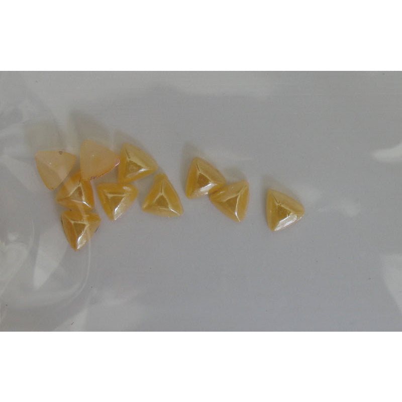 Decoro per unghie a forma di piccoli triangoli bombati di materiale plastico. Colore oro.