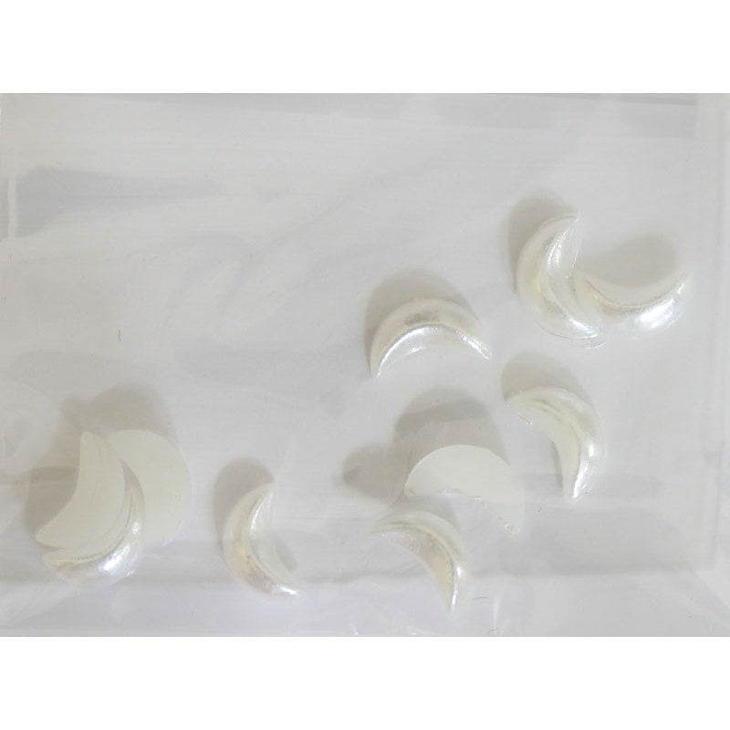 Decoro per unghie a forma di piccole mezzelune bombate di materiale plastico. Colore bianco.