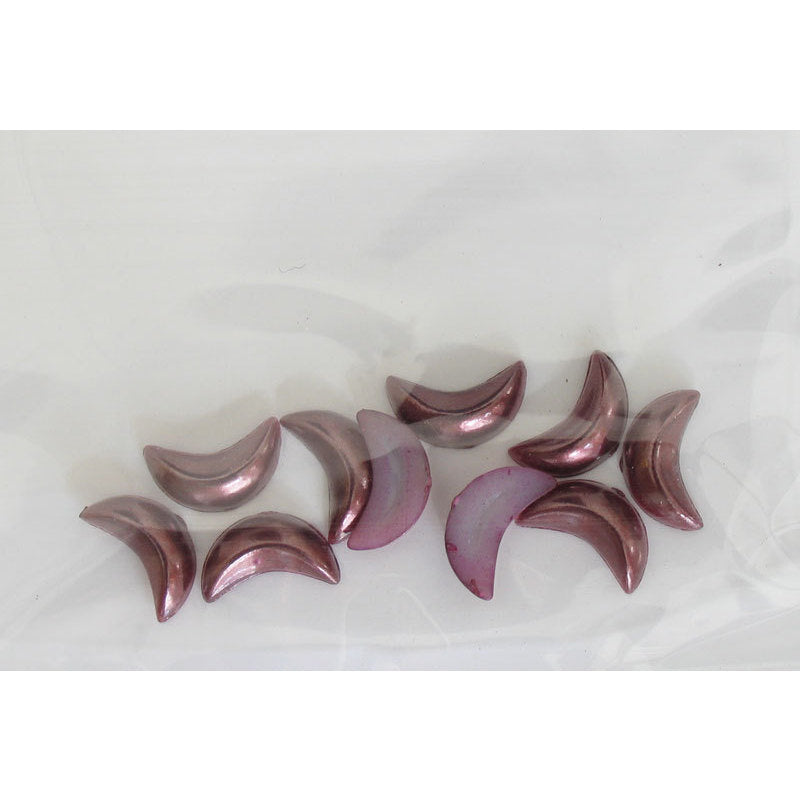 Decoro per unghie a forma di piccole mezzelune bombate di materiale plastico. Colore bronzo.