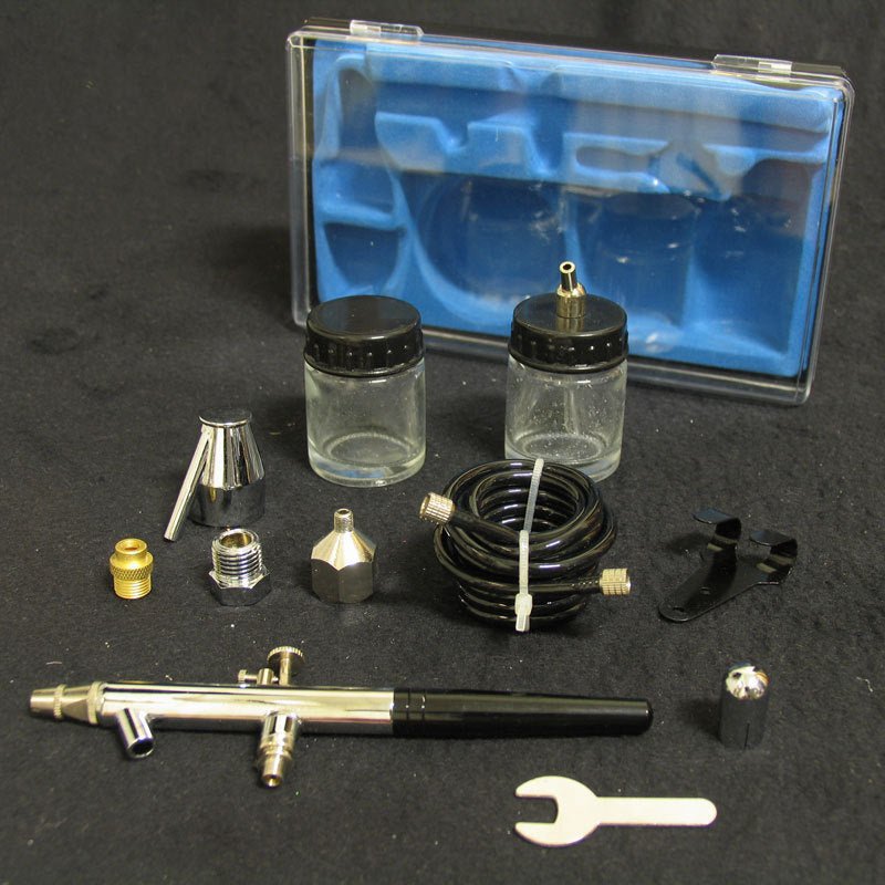 Pistola per compressore dotata di due serbatoi in vetro, lavora ad una pressione di 15-50 atmosfere. Dotata di doppio beccuccio: 0,2 e 0,3 mm (può essere utilizzato per body painting). Utilizzabile con il compressore codice: QS_0708.