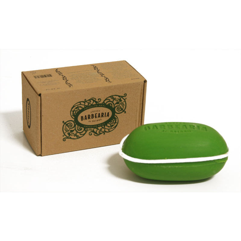 Saponetta da bagno Antiga Barbearia collezione Principe Real Bairro, ispirato dal giardino del Principe Real, che si trova nei pressi del Bairro Alto di Lisbona. Crea una ottima schiuma, idrata la pelle del corpo. Grazie alla corda è perfetto per essere appeso nella stanza da bagno o nella doccia. Una fragranza con note di fondo di legno caldo, speziato, di cioccolato, chiodo di garofano e muschio.
