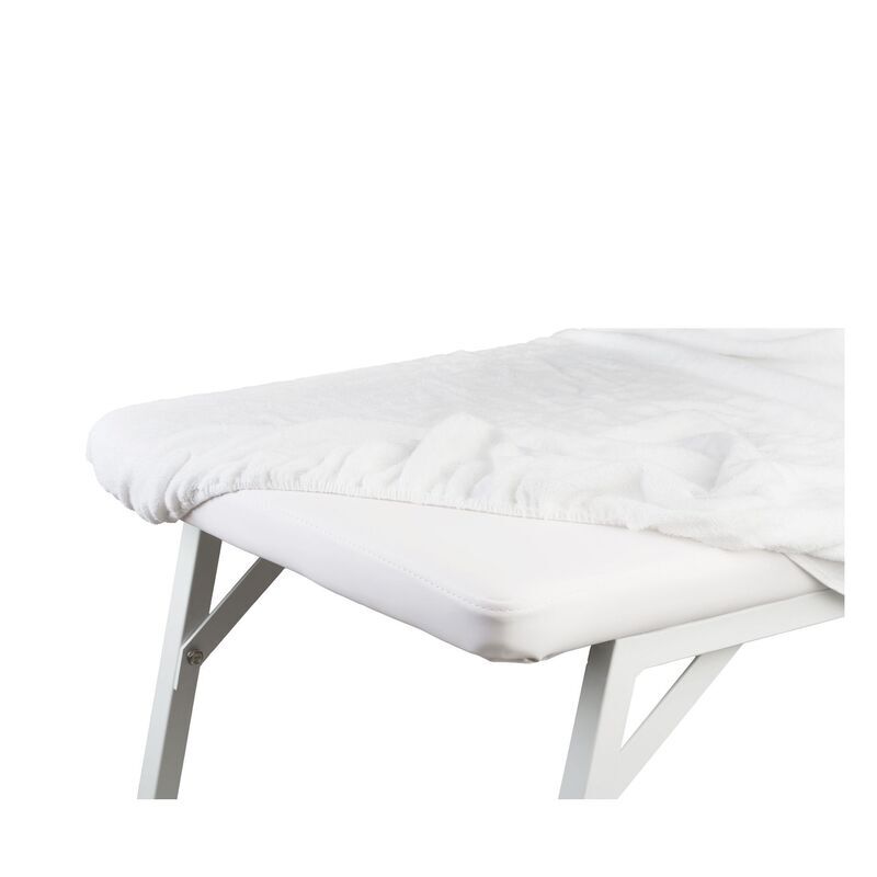 Telo coprilettino in spugna 100% cotone con angoli elastici di colore bianco. Dimensioni 100X200 cm Grammi 340/mq