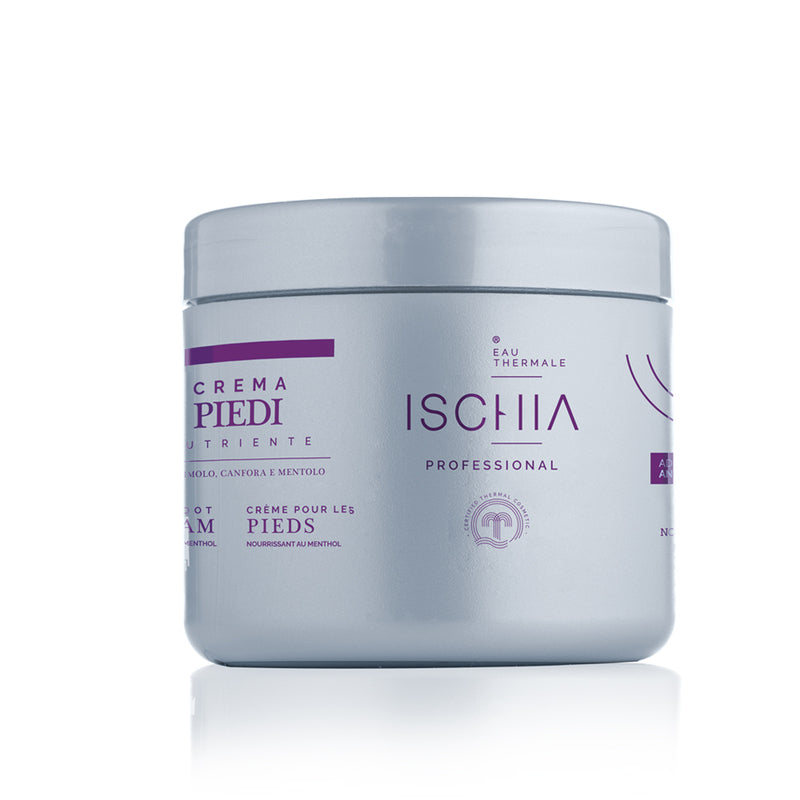 Crema piedi ad azione idratante e nutriente che lenisce e leviga i piedi secchi. La formula arricchita con Acqua termale d’Ischia, dona un’idratazione intensa ed immediata, rafforza la naturale barriera lipidica, lenisce la pelle estremamente secca e ripristina la cute dei talloni screpolati. L’azione antiodore e rinfrescante è garantita dal mentolo, canfora e timolo, che regalano una sensazione di freschezza prolungata e una sensazione di confort estrema. La texture si assorbe facilmente senza ungere e dona morbidezza ed elasticità.