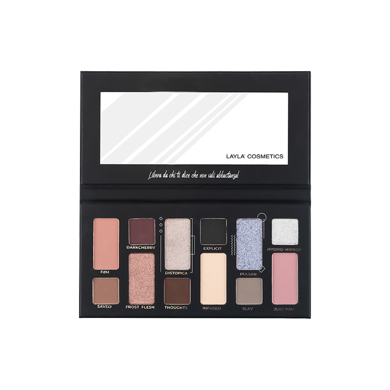 Palette FREEVOLA Cold Ombretti Layla. Palette composta da 12 ombretti dai toni freddi in 3 differenti finish.