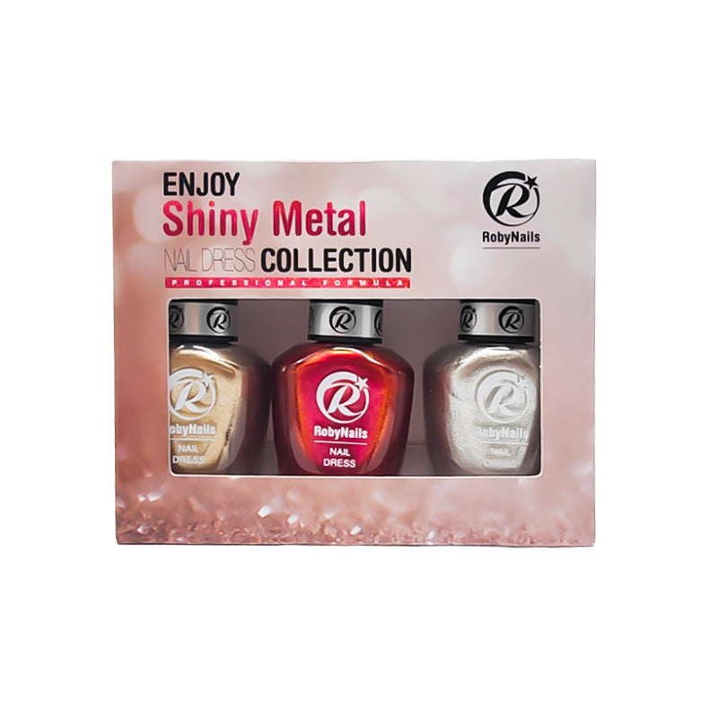 Kit Shiny Metal Smalto per Unghie Nail Dress 3x10 ml Roby Nails