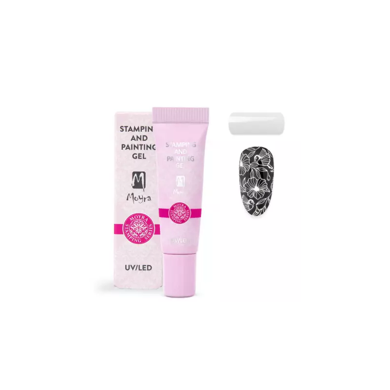 Stamping & Painting Gel Moyra® è un prodotto innovativo un gel due in uno perfetto per creare splendide decorazioni con la tecnica dello stamping nail art o dipinte a mano. Il gel Uv&Led è altamente pigmentato, non rilascia strato di dispersione e garantisce la realizzazione di nail art con la massima precisione, senza che il prodotto coli durante la lavorazione.