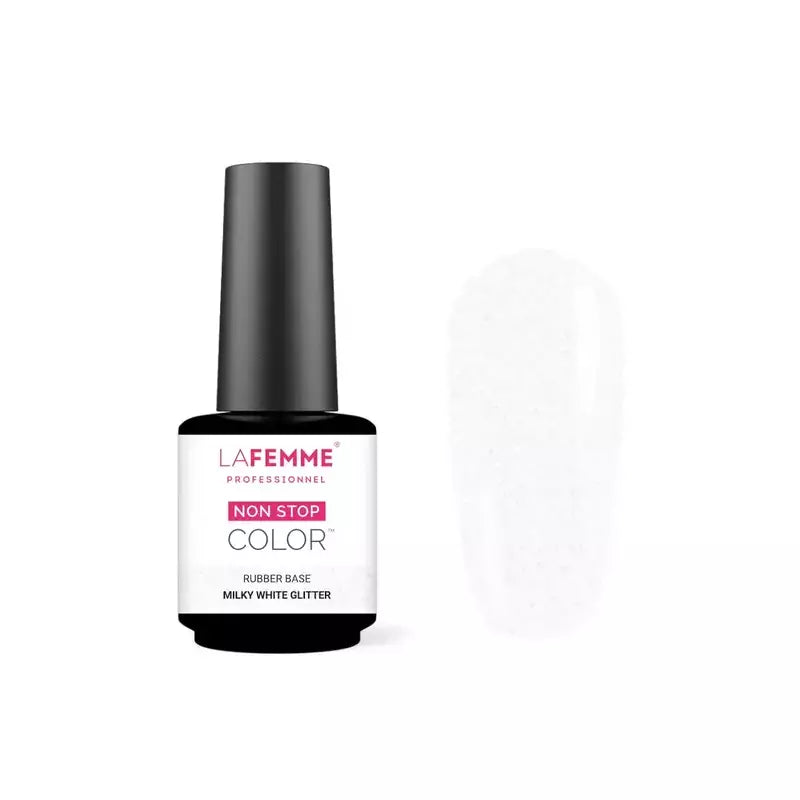 Smalto Gel Polish Rubber Base Milky White Glitter R006 LaFemme 15 gr