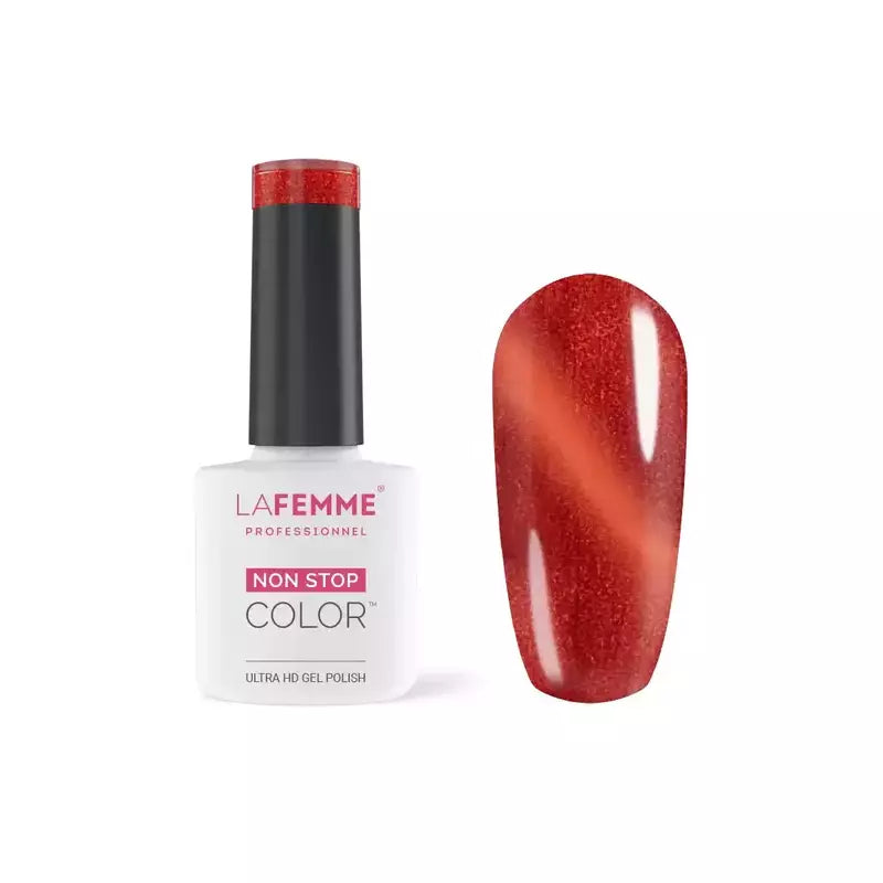 Dalla collezione Merry and Bright di La Femme, lo Smalto Semipermanente Joy – CAT EYE Rosso Non Stop Color offre una durata straordinaria di oltre 21 giorni, unita a una brillantezza senza pari grazie alla sua formula Ultra High Gloss.