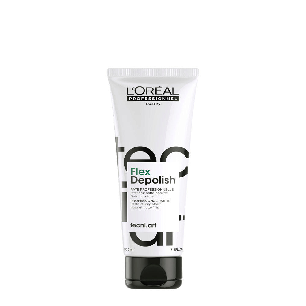 Depolish di L’Oréal Professionnel, della linea Tecni.Art, è una pasta modellante destrutturante pensata per creare look ruvidi, spettinati e dal finish opaco. Perfetta per chi desidera uno stile naturale ma di carattere, questa cera styling permette di definire le ciocche, aggiungere texture e dare movimento ai capelli senza appesantirli.