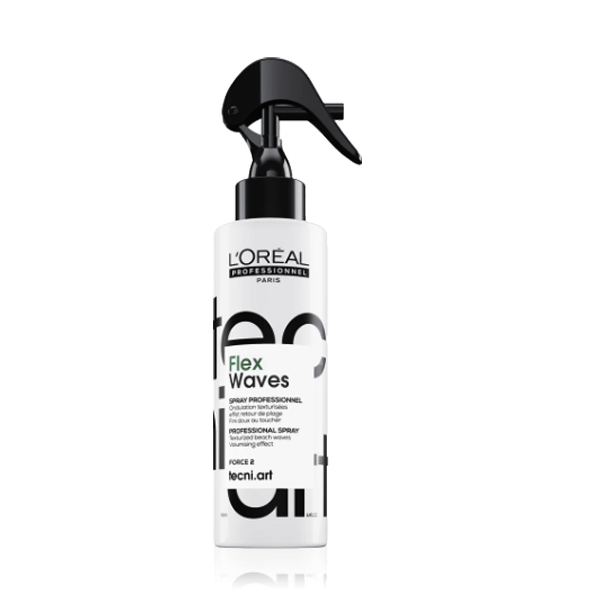 Ottieni il perfetto look da spiaggia con Flex Waves Tecni.ART di L’Oréal Professionnel. Questo spray texturizzante al sale marino regala ai capelli onde naturali e un effetto messy dal finish opaco, senza creare crespo.